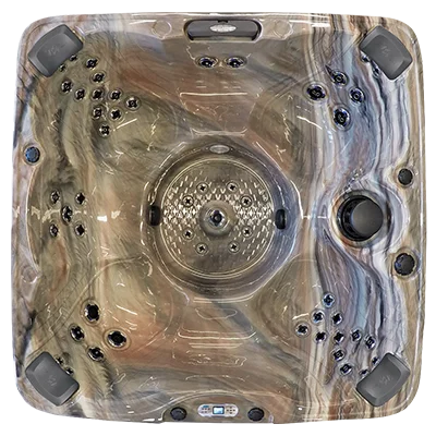 Cal Spas powerful TORNADO JETS are strategically placed to keep you in the center of the swim spa. Creating a strong current from below that is designed to help you stay afloat while swimming.